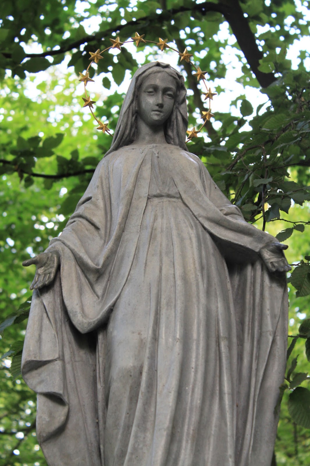 Figura Matki Bożej z początków ubiegłego wieku, na terenie Zamku Biskupów w Janowcu